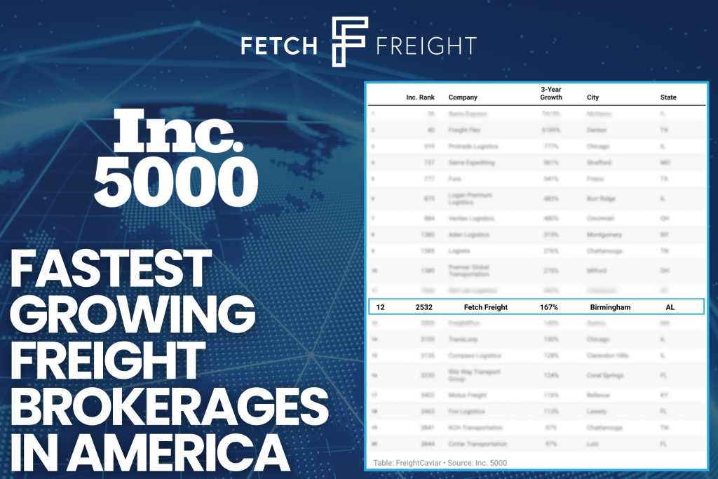 Fetch Freight, a locally grown logistics and freight brokerage company headquartered in the heart of Birmingham, has earned a spot on the 2025 Inc. 5000 list, which ranks the fastest-growing private companies in the United States. The honor places Fetch among a select group of businesses that are not only growing quickly but also helping to fuel the economy and shape the future of their industries.